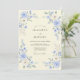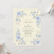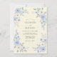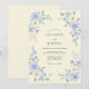 Delicadas flores de periwinkle y crema forman una cascada elegante y pictórica en este diseño. La disposición floral aireada evoca una atmósfera suave y romántica, perfecta para una celebración atemporal. Un sutil follaje añade profundidad al tema floral artístico y suave.
