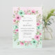 Los tonos suaves de menta y rosa se mezclan con delicados capullos rosados y exuberante vegetación. Este diseño evoca una atmósfera tierna y romántica, perfecta para una celebración caprichosa. El estilo de acuarela ligera añade un toque de belleza etérea.