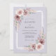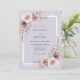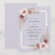 Este diseño presenta un suave fondo de lavanda adornado con delicadas flores de acuarela en tonos de malva y rosa polvorienta. Rosas exuberantes y ramitas etéreas se complementan con el follaje de eucalipto verde salvia, creando una atmósfera soñadora y serena. Los elementos botánicos pintados evocan un sentido de arte elegante perfecto para un evento de primavera o bohemio.