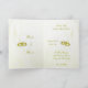 Invitación plegada, tamaño: 10,2 cm x 14,2 cm, papel: Mate signatura, sobres: Blanco