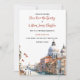 Bienvenidos al encantador mundo de Venecia, Italia, donde cada rincón está adornado con belleza e historia. Nuestra invitación a la boda le transporta al corazón de esta romántica ciudad, capturando su fascinante horizonte y el intemporal encanto de las baldosas italianas. Imagínate a orillas del Gran Canal contemplando el majestuoso paisaje veneciano. Nuestra invitación incluye delicados gráficos de acuarelas que representan los icónicos domos, torres y palacios que adornan el horizonte de la ciudad. Los tonos cálidos de terracota, ocre y oro rosa se mezclan a la perfección, reflejando el encantador resplandor de la puesta de sol veneciana. Pero lo que realmente diferencia nuestra invitación es el exquisito detalle de las baldosas italianas, que recuerdan los intrincados patrones que se encuentran en los palazzos y las plazas históricas de Venecia. Estos elegantes motivos, meticulosamente reproducidos en ricos azules, verdes y dorados, adornan los límites de la invitación, infundiéndola con un sentido de encanto y sofisticación del Viejo Mundo.