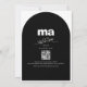 Celebra tu amor con nuestra invitación a la boda blanca y negra única y moda. Este moderno diseño minimalista presenta un audaz monograma de tipografía en la parte superior y un delicado y romántico dibujo de una pareja de aves amorosas. Completada con un código QR para RSVP y detalles adicionales, esta invitación combina elegancia con comodidad, perfecta para una celebración contemporánea y atemporal.
