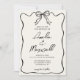 Fija el tono de su día de sueño con esta adorable invitación a la boda! Con un bonito borde de lazo de coqueta pintado a mano, es dulce, elegante y totalmente tuyo. Personalízalo con tus detalles para crear la invitación perfecta para tu celebración romántica!