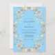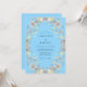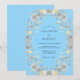 Este diseño presenta un vibrante fondo azul azure adornado con un delicado borde de rosas en tonos grises suaves y blancos suaves. Los acentos amarillos brillantes y los capullos dorados proporcionan un contraste alegre, creando una estética fresca y aireada. Perfecto para un evento de primavera o verano, el arreglo botánico ofrece una apariencia sofisticada y atemporal.