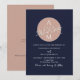 Invitación Boda Rosa Claro Azul Marino Monograma