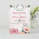 Encanta a tus invitados con una delicada invitación a la boda, con un suave color de agua rosa adornado con elegantes rosas y exuberantes hojas verdes, un romanticismo eterno en un diseño sencillo pero encantador.