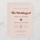 Un tema de moda retro: adopta este diseño tipográfico vintage y elegante para tu papelería boda, con un tema de color rosa melocotón. Fácil de mezclar y emparejar con nuestra papelería similar disponible en naranja quemado, terracota y azúcar marrón. Personalizable completamente los colores y fondos de texto.