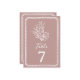 Ilustracion botánico floral de la línea blanca sobre fondo rosado con texto blanco y marco dibujado a mano.