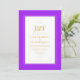 Invitación de boda moderna y simplista con acentos rosa, morado, negro y dorado personalizables según las especificaciones del evento.