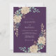 Un fondo de ciruela profundo establece un tono sombrío y romántico para este diseño floral. Delicadas rosas crema se paren con hojas suaves de color azul verdoso y salvia en un estilo de acuarela pintoresca. Los acentos de follaje marrón claro proporcionan un contraste terrenal con la rica y oscura paleta de colores. Esta estética botánica es ideal para una elegante ocasión nocturna.