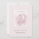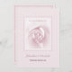 Personaliza estas invitaciones románticas a bodas rosadas añadiendo los nombres de la novia y el novio. La parte delantera es una fotografía de una rosa rosa rosa con gotas de agua por la mañana y enmarcada en un encaje digital y en remolinos de fibra pastel.
