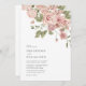 Invitación a la boda rosada de Rosa con color de agua. Esta elegante y elegante invitación a la boda incluye hermosas rosas rosa rosa rosa de color agua pintadas a mano con vegetación de sabores dispuestas en un ramo vintage de moda. La parte trasera de la invitación incluye la misma obra de arte.