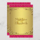 Hermosas invitaciones de bodas doradas y rosas calientes. Usted puede fácilmente personalizar esta elegante invitación de boda dorada y rosa caliente para su evento simplemente agregando sus detalles en el estilo de letra, color, diseño y redacción de su elección.