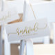 Rótulo reservado colgado del boda (Oro): Cuelga estos carteles bodas de las sillas, o simplemente coloca los carteles sobre un asiento de silla. Este letrero boda reservado presenta caligrafía / tipografía en oro plano. Cambie el color del diseño eligiendo un nuevo color de relleno.