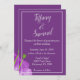 Este diseño, sencillo y de moda morado, presenta un tema morado y plateado. Utilizando un fondo real morado hay un marco plateado que cubre los detalles del boda. Para las plantillas se utiliza el tipo de letra plateado. En la esquina inferior izquierda de la invitación hay una hermosa flor morada. ¡Pida hoy sus invitaciones! Diseño de invitaciones: Bodas de arte Floral de Rhoadie: AMBilustraciones http://www.etsy.com/shop/AMBillustrations/