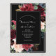 Invitación a una boda floral de color rosa y borgoñona. Tan impresionante y moda. Lujoso pero sencillo. Los colores en negrita establecen el tono para la clase pura. La invitación perfecta a la boda. El burdeos y el azul parecen tan bonitos con el fondo negro.