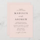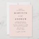 Invitación minimalista y moderna a la boda con los detalles de su boda en letras negras con acentos caligráficos. El fondo de color puede cambiarse a un color de su elección. Diseñado para coordinar con nuestra colección de bodas Modern Elegance.