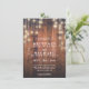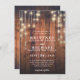 Esta rústica plantilla de invitación a la boda inspirada en el boho presenta luces de cuerda con un fondo rústico de madera marrón. Todos los estilos de texto, colores, tamaños se pueden modificar para adaptarlos a sus necesidades.