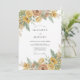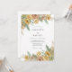 Este diseño presenta una paleta cálida de ocra, amarillo mostaza y terracota. Delicadas rosas y ranúnculos de acuarela se combinan con helechos terrosos verdes y follaje de eucalipto. La disposición botánica crea una atmósfera orgánica y rústica perfecta para un evento otoñal o bohemio. La estética es suave pero vibrante con texturas naturales y pictóricas.