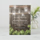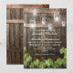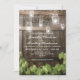 LUCES DE BARREL MASON JAR PARA BODA | Con una granero campestre, fondo de barril de roble oscuro, luces de cuerda de mason jar brillantes, año en que ambos se unieron, hojas de vid, texto moderno de boda. Encuentre otras invitaciones de boda de madera en http://www.zazzle.com/special_stationery*