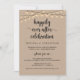 Hermosa tarjeta de invitación de boda rústica moderna en kraft marrón, luces de cuerda, tema cottage de granja, anuncio de boda (Celebración de Feliz Para Siempre). Esto es perfecto para la recepción de su boda y la fiesta de celebración después de la boda. Agregue sus detalles en la fuente / letra coincidente.