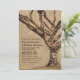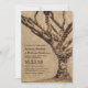 Invitaciones de boda rústicas de campo que presentan un romántico entorno campestre boscoso al aire libre con un roble como pieza central, cubierto de luces centelleantes de cadena. Un encantador corazón de amor tallado con sus iniciales, una superposición desvanecida de papel kraft con un sutil indicio del bosque distante y cálida redacción de boda.