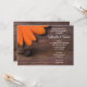 Invite a sus invitados a celebrar a la recién casada y al recién casado la mañana después de su ceremonia de matrimonio con la encantadora Invitación de Brunch de Boda de Rustic Daisy. Esta invitación de desayuno o almuerzo después de la boda con tema de rancho personalizado casual pero elegante cuenta con una encantadora fotografía floral de una flor de gerbera naranja con un fondo de madera de granero desgastado marrón. Inspo perfecta o idea para una celebración de fiesta de granero de estilo granja informal. Disponible como invitación impresa para enviar por correo o como descarga digital para compartir fácilmente en línea.