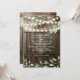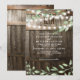 Invitaciones de boda de viñedo con vegetación con granero campestre, fondo de barril de roble oscuro, luces de cadena brillantes, popular follaje verde de acuarela, tu monograma y una plantilla de boda moderna. Encuentra otras invitaciones de boda de madera en http://www.zazzle.com/special_stationery