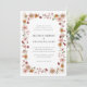 La invitación de boda de flores silvestres rústicas es perfecta para la novia inspirada en la naturaleza. Con hermosas flores silvestres pintadas a mano en acuarela en una gama de tonos rosa rubor, rosa polvoriento, burdeos y terracota, este conjunto está enmarcado en un estilo boho rústico elegante con vegetación de color verde salvia que añade un toque de encanto moderno. Haz que tu gran día sea inolvidable con este encantador conjunto de boda. Encuentra productos coordinados en la Colección de Boda de Flores Silvestres de Otoño Boho Rústico.