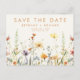 Este diseño combina elegancia y capricho, emparejando un texto moderno mínimo con una hilera de delicadas flores silvestres acuáticas perfectas para bodas de inspiración bohú.