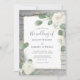 Invitaciones de boda florales rústicas de color dorado y rosa blanca que puedes personalizar fácilmente en una plantilla de bricolaje hermosa y fácil de usar. El diseño original de acuarela boho ilustrado por Raphaela Wilson representa rosas blancas elegantes acentuadas en dorado sobre hojas de eucalipto verde grisáceo. Debajo de estas flores hay una madera de granero vintage en tonos claros y oscuros de gris azulado polvoriento. Al personalizar aún más el diseño, puedes descubrir capas ocultas que tienen diferentes colores de madera de granja en tonos de azul marino, blanco marfil, borgoña roja, púrpura lavanda, marrón cálido y verde azulado. En estas elegantes invitaciones de boda, también tienes la flexibilidad creativa de ocultar la madera por completo y elegir entre un diseño de lavado de acuarela gris o un color de fondo único simple o de tu elección. ¿Prefieres acentos plateados en lugar de dorados para tu follaje de eucalipto? Simplemente oculta las capas doradas y muestra las hojas y ramas plateadas. Estas hermosas invitaciones de boda de rosas blancas complementan cualquier celebración de boda/ baby shower con tema de jardín durante todo el año, ya sea otoño, verano, primavera o invierno. Categoría: invitaciones de boda rústicas; invitaciones de