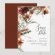 Esta elegante invitación de boda de terracota natural cuenta con flores rústicas de terracota en acuarela y rojo oscuro, hojas secas y ramitas. Diseño moderno y trendy.