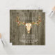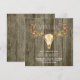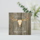 Invitación de boda rústica del suroeste con una calavera de venado adornada con enredadera floral sobre un fondo de madera de granero rústico. Esta hermosa y rústica invitación de boda con cuernos de venado es fácilmente personalizable para su evento simplemente agregando sus detalles en el estilo de fuente, color y redacción de su elección.