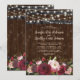 Invitación Boda rústica en barril con flores rojas de Borgoña