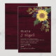 Invitación de boda de burgundy elegante, rústica, boho, botánica y chic con girasol.