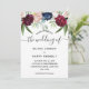 Elegantes invitaciones a bodas floridas de acuarela rústica con hermosas flores de campo en rosa, borgoña y azul marino. La parte trasera de la tarjeta es de color rosa negro moderno. Añade fácilmente tus detalles de boda personalizados.