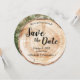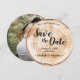 Invitación de anuncio de boda rústica con foto en textura de madera: una mezcla de encanto natural y elegancia romántica, perfectamente adaptada al tema de su boda rústica. Esta tarjeta redonda única captura la esencia de la textura de la madera, emulando las rodajas de disco rústicas que a menudo se ven en bodas hermosas y románticas. *Textura de madera impresa en papel