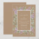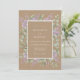 Este diseño presenta un fondo cálido de tonos terrosos que proporciona una hermosa base para los elementos florales. Delicados ramitos de lilas púrpuras y suaves hojas de eucalipto verdes se superponen alrededor del centro. Detallados detalles intrincados de encaje blanco agregan un toque de elegancia vintage. Perfecto para un evento al aire libre rústico, la paleta de colores combina beige, lavanda y verde salvia.
