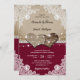 Estas románticas invitaciones de boda rústicas inspiradas en los corazones burlap y en un entorno de encaje son perfectas para invitar a sus invitados a su rústica y borgoñona fiesta de bodas.