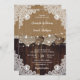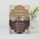 Estas elegantes y románticas invitaciones de boda rústicas con corazones de burrega sobre un fondo de madera y encaje adornado con luces de cuerda son perfectas para invitar a sus invitados a su rústica fiesta de bodas de campo/granero.