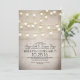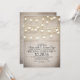 Encantadora invitación rústica a una boda rural con textura de fondo de burpón vintage y luces de cuerda colgantes. Agradable, elegante y rústico, ideal para su granero o boda al aire libre. — Todos los elementos de diseño creados por Jinaiji