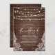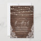 Una temática clásica de campo con un estilo moderno. Este diseño presenta un fondo rústico de madera con luces de cuerda en la parte superior y un hermoso y delicado encaje en las esquinas inferiores. El texto aparece en el medio con "el boda de" en elegantes letras de guiones para añadir ese toque extra elegante! Perfecto para bodas al aire libre en primavera, verano o otoño. Personalizar este diseño haciendo clic en el botón "Personalizar" y escribiendo en los cuadros de texto. La carta se transforma en un fondo rústico de madera. No te olvides de comprobar la amplia gama de tamaños de papel, texturas y formas que Zazzle ofrece. Artículos coincidentes disponibles en nuestra tienda: www.zazzle.com/invitationsandstamps?rf=238926336969587303