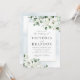 Moda moderna acuarela color blanco eucalipto floral y marco dorado sobre un polvoriento fondo azul, con monograma de pareja en la parte trasera, elegante y elegante, gran invitación para boda rústico, boda botánico y boda en la playa en primavera y verano. Ver todas las piezas coincidentes de la colección