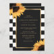 Elegantes invitaciones de boda de girasol a rayas blancas y negras. Elementos coincidentes disponibles. Invitaciones rústicas a la boda de girasoles negros y blancos. Invitaciones rusticas a la boda de girasoles negros y dorados.