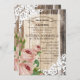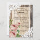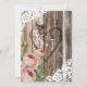 Rústico diseño de tarjetas de invitación de boda occidental con rosas rosas rosas y encajes blancos sobre tablones de madera envejecidos.