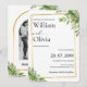 Invitación a la foto de Boda Rústico Geométrico Sage Green Greenery Gold | Moderna Moda elegante Invite a anunciar su día especial con nuestra cautivadora Invitación a Boda Rústico Geométrico de Oro Sage Green Greenery. Este diseño único combina con maestría el encanto natural de la vegetación exuberante y los elementos botánicos con el estilo contemporáneo de las formas geométricas de oro brillantes. Los elementos de textura rústica proporcionan un ambiente cálido y acogedor, todo centrado en tu compromiso favorito o la fotografía de tu pareja. Esta invitación es perfecta para parejas que buscan un diseño orgánico y moderno, ideal para modas rústicas, rústico-moderno, jardín, granero o elegantes bodas al aire libre. La yuxtaposición del follaje verde suave y la crujiente geometría metálica crean una invitación visualmente impresionante y memorable. Personalice fácilmente esta invitación con sus nombres, fecha de boda, hora, lugar, detalles de RSVP y otra información crucial. La foto elegida se integra perfectamente en el diseño, haciendo que esta invitación sea realmente única. Seleccione de la gama de tipos de papel premium de Zazzle para encontrar la textura y el peso perfectos que realzan el aspecto de este diseño exquisito. Cree un conjunto completo y cohesivo de papelería boda coordinando esta invitación con piezas coincidentes de la colección, como tarjetas RSVP, tarjetas de detalle, notas de agradecimiento, guardar las fechas y más. Haga clic en "Personalizar Now" para subir su foto y personalizar esta hermosa Invitación a la Boda Rústica Geométrica Sage Green Greenery Gold, con un tono sofisticado y personal para su próximo boda. Invitación a una boda geométrica de oro rústica, foto de boda rústica de color verde, invitación a una boda de oro verde verde verde verde verde verde verde, invitación a una boda rústica con foto, boda rústico invitación a boda, invitación a boda geométrica botánica