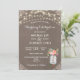Invitación Boda Rústico Gris Mason Jar Flower String Luces