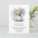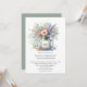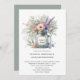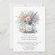 Esta rústica invitación a la boda irradia elegancia rural con su suave ilustracion acuarela de un tarro de albañil con flores silvestres en tonos rosa, violeta y crema, acentuado por la vegetación exuberante. El estilo pintado a mano le da un toque romántico y agradable, mientras que el tarro de albañil evoca un encanto vintage y un ambiente acogedor. Equilibrado y aireado, el diseño se siente perfecto para una celebración de viñedos o jardines, invitando a los huéspedes a un día lleno de amor, naturaleza y sincera simplicidad. Personalice la etiqueta en el frasco y el resto de la invitación.