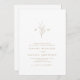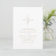Invitación minimalista a una boda en color blanco y oro, con sus iniciales monogramadas y hojas botánicas ilustradas a mano en la parte superior, los detalles del evento se muestran a continuación en escritura moderna y letra clásica. Sencillo y lujoso. Ideal para bodas clásicos modernos, boda formal simple, elegante boda botánica. Vea todas las piezas coincidentes de la colección.