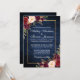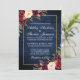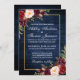 Invitación Boda Rústico Oro Borgoña Floral Azul Madera